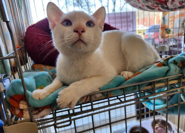 Peaches was bottle fed in one of Anderson Valley Rescue's foster homes after being rescued at only a few weeks old. She is active and playful and has been healthy from the beginning. She is spayed, vaccinated to age, and microchipped and available for adoption for $125 with approved application.